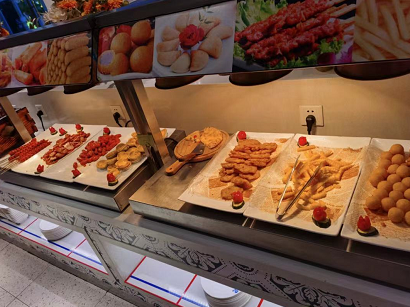 限量供应:热菜、凉菜、现磨咖啡、冰淇淋、蛋挞、披萨、沙拉、水果等。