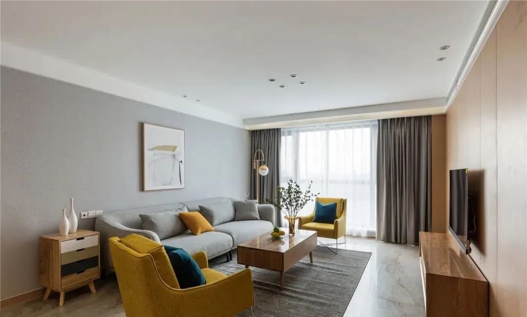▲ 大片的自然光透过窗户洒进室内,让整个客厅都沐浴在温和的氛围里。
