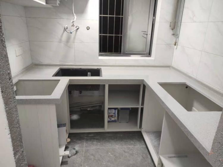 一体打磨的细节,还是很不错的,台面和墙体之间 没有打胶。美缝师傅过来帮忙修改卫生间阴角的美缝,会帮忙顺带打下美缝剂。