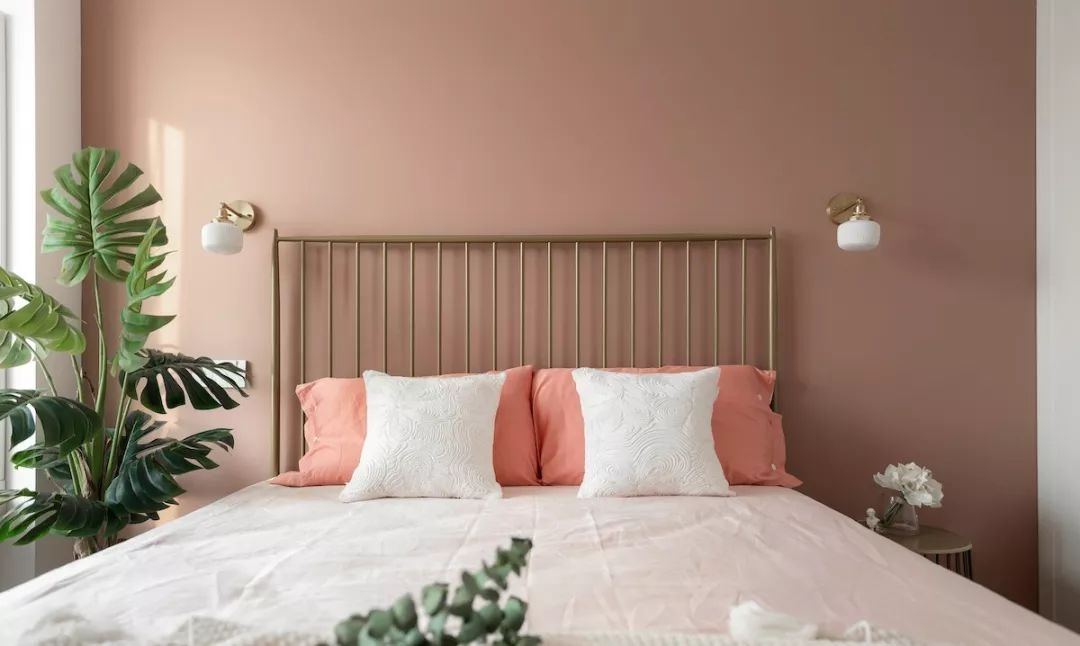 儿童房墙面则是清新的粉红色,与客厅的脏粉色里外形成呼应。白色的羽毛吊灯,增添了整个空间的柔美感。