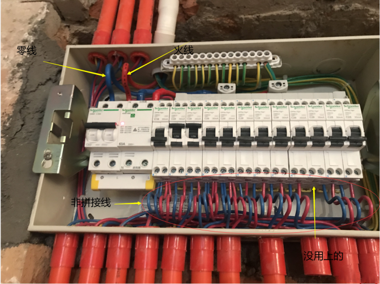 1 墙电箱高度1.6米以上,左零线右火线,强电箱的电线没有接头,水电师傅做的很漂亮。