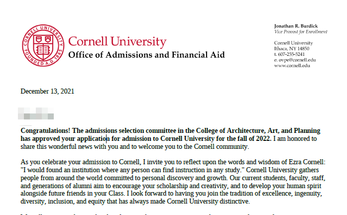 徐绎杰同学就是这样一个从普娃蜕变成牛娃的例子。他的学术成绩不算特别顶尖,但由于较早发现自己在建筑方向上的兴趣,在特定领域有所研究后,最后被顶级学府康奈尔录取。