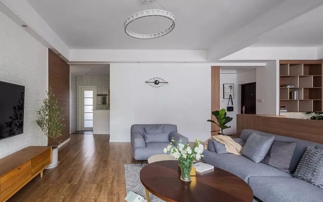 今天分享的是一套面积为128㎡的北欧风格装修案例,四居室的户型,整个空间布局 非常特别,采用的是横厅布局,并且以一个半墙来分割两个空间,原木色+白色搭配,空间层次感非常的强烈。