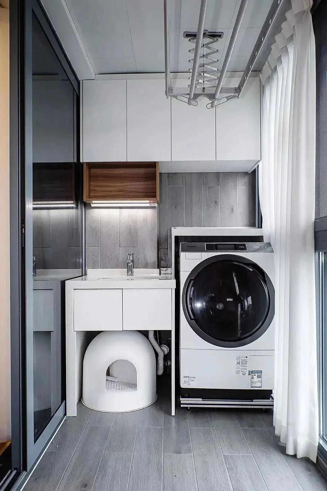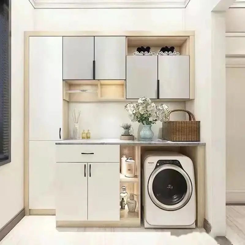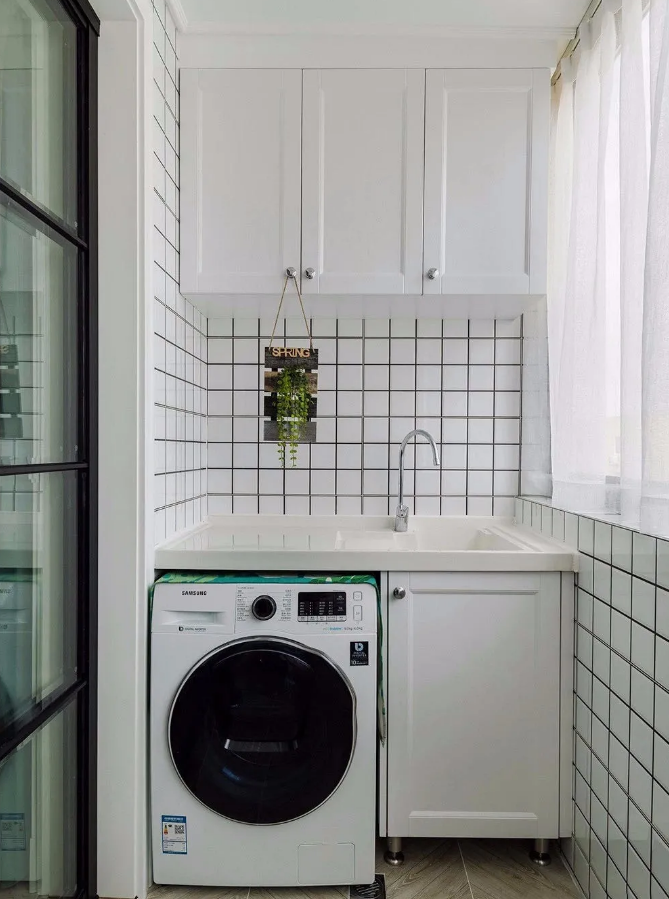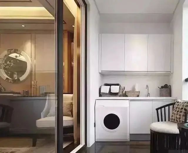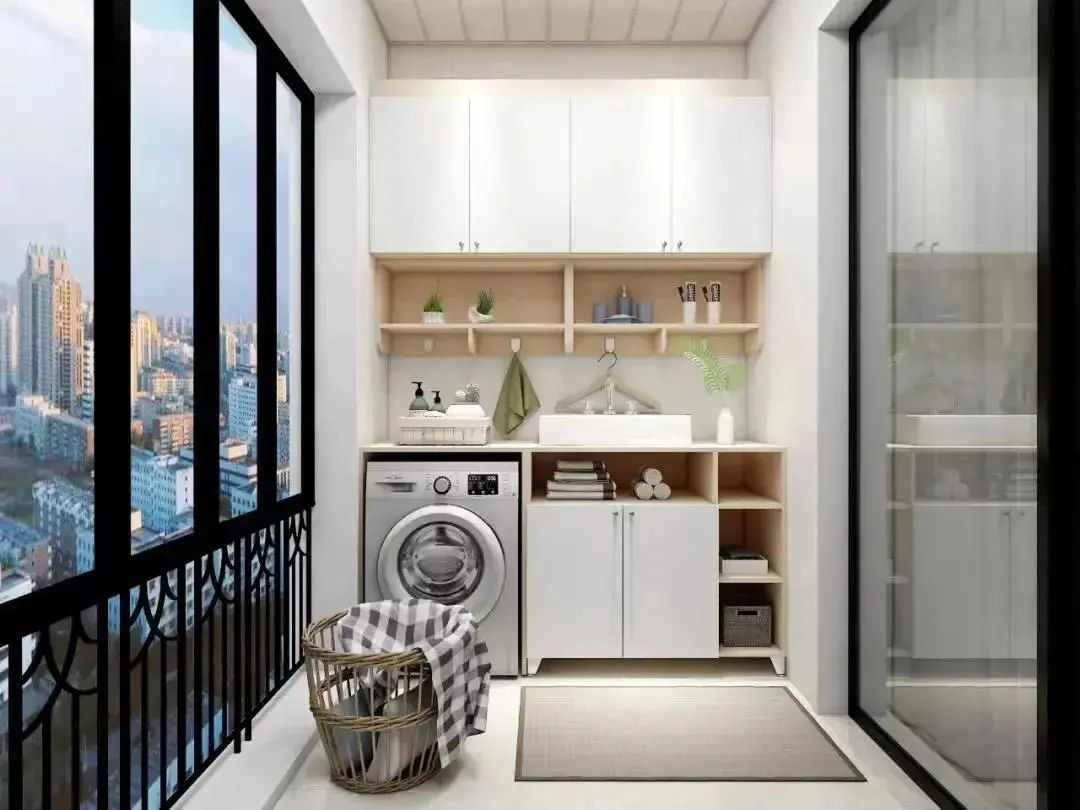 阳台柜主要是用于隐藏洗衣机、烘干机以及收纳平时跟洗衣相关的一些物品,阳台无论是打通还是独立,一组阳台柜都十分必要。