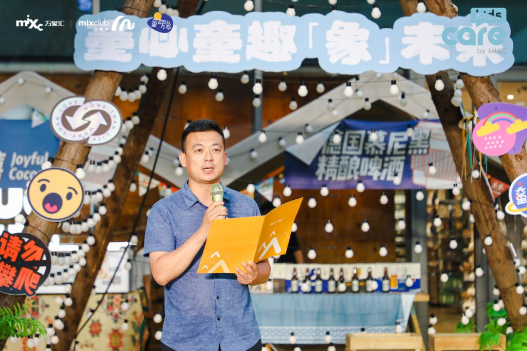 昆山万象汇总经理杨沅其现场致辞,从品牌定义,回顾与发展以及运营特色正式向全城儿童客群推出了kids care儿童特色服务品牌。