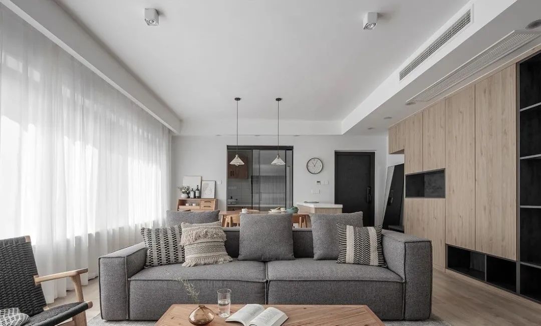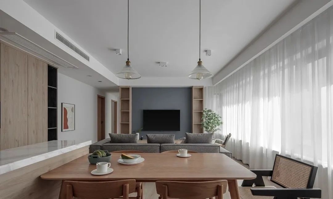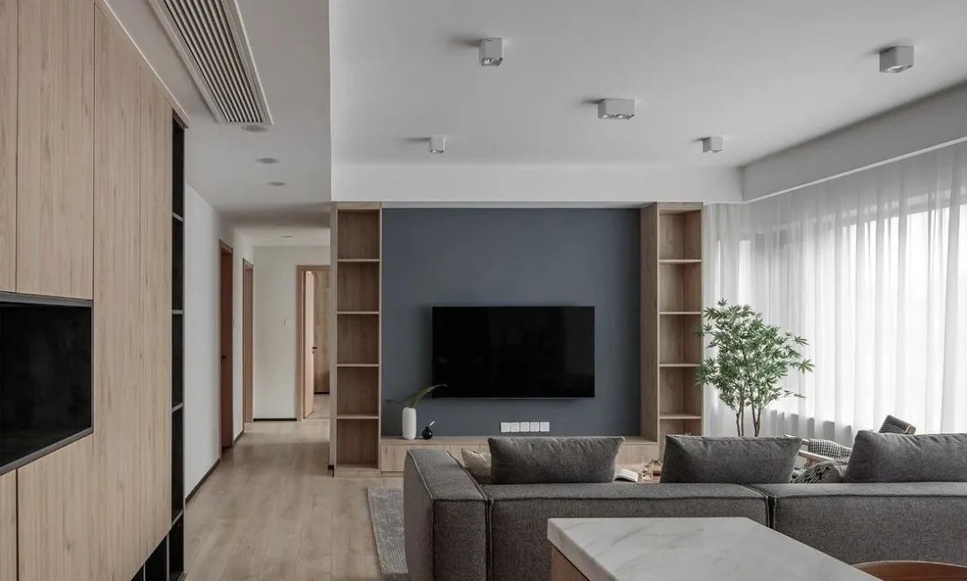 这是一套100平米的三房新房,房型方正且无过多弊端。因此,设计师与业主沟通下来,主要做了以下几个方面的设计。