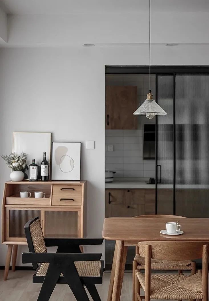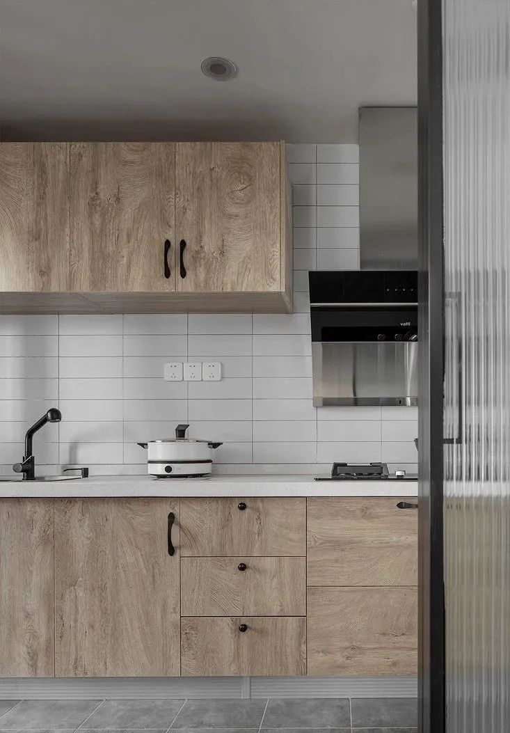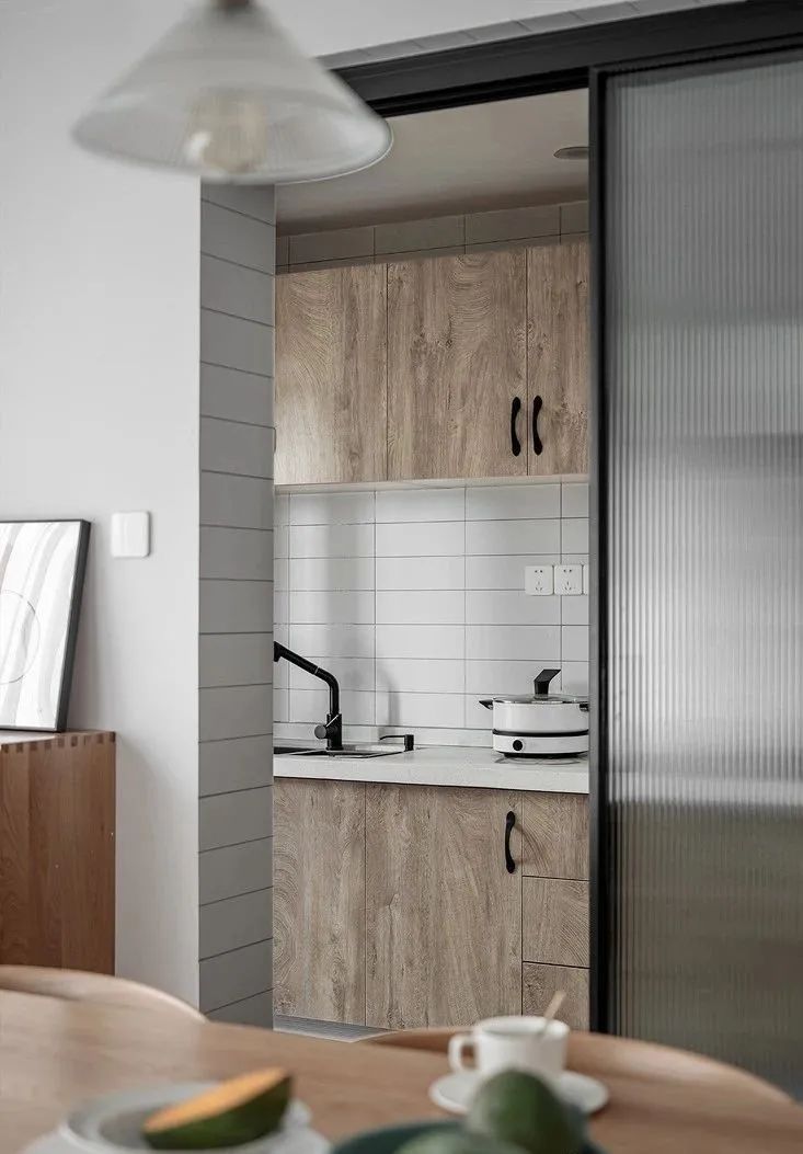 灰与白、黑与木、一字型台面贯通墙体、半透明玻璃移门,基于使用场景与xi惯,在层次变化中干净利落,又释放永恒的优雅。