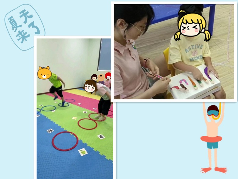 5、个训课程:由于特殊儿童在认知理解,社会性及专注力方面的发展困难,一对一的课程是儿童发展进步的必须教学模式。在ABA的原理下将DTT的手法灵活运用,着力解决儿童认知,理解与语言的发展。个训课程的重点表现在:根据每个孩子的具体能力、针对每个儿童不同阶段的不同需求、根据科学的PEP--3评估来制定合理的教学计划,由老师一对一实施完成,加强儿童的个人基本知识和能力(配合、注意力、模仿、语言、认知等),为融入集体环境奠定基础。