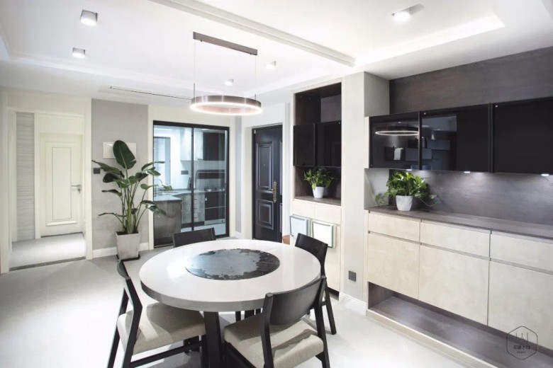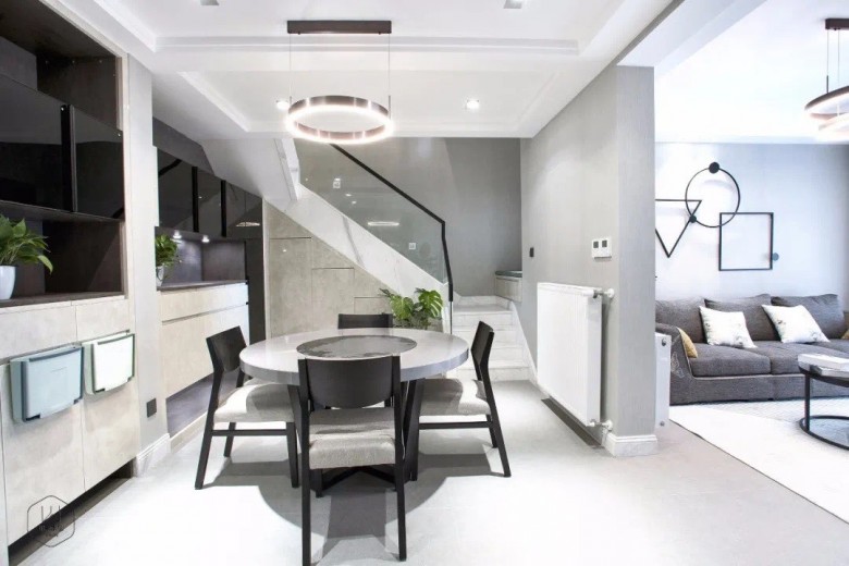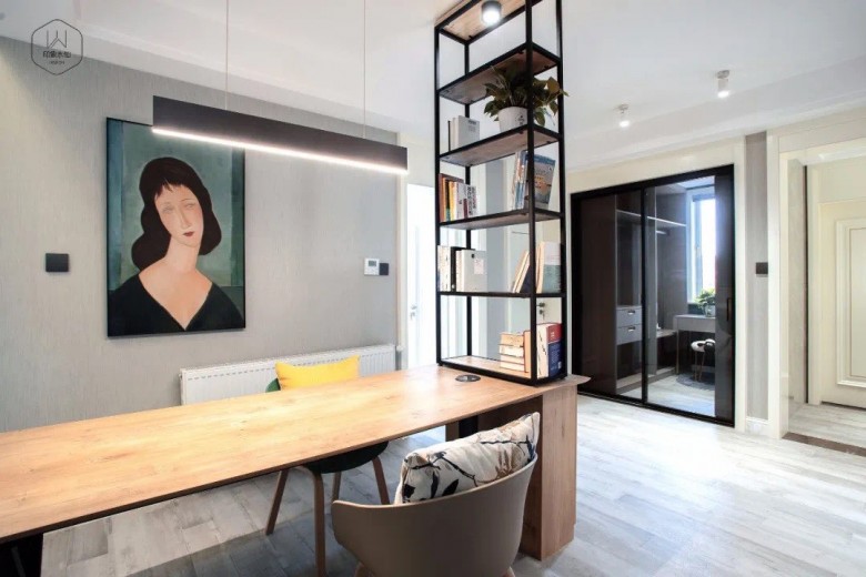 本案是180m的顶楼复式,是一家三口的改善型住房和学区房。因为业主一家只需保留三个卧室,因此设计师进行了整体的改造布局设计,将一楼设定为公共活动空间,有一间卧室做为客卧,留给父母或者朋友来住;二楼设定为休憩和学习的空间;三楼属于活动区,开了两个天窗,采光极好。