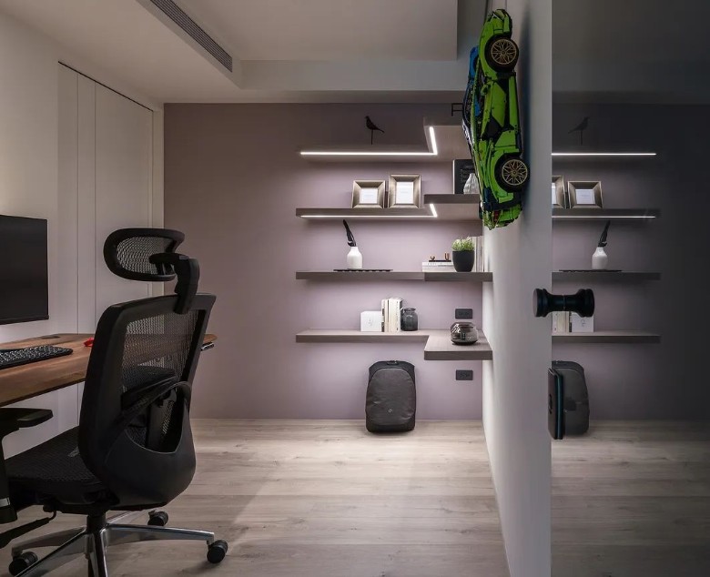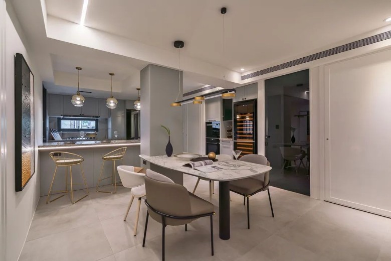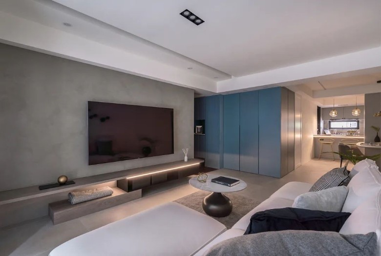 整面威灵顿蓝收纳柜成为公共区域第一印象