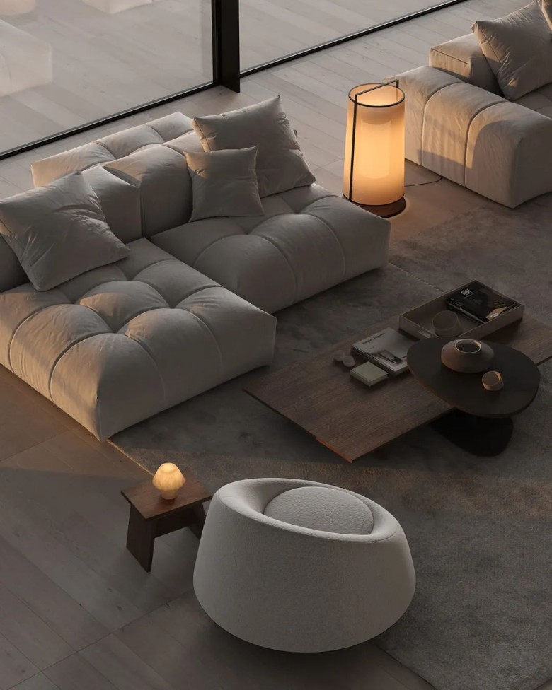 使用华丽的软家具,添加对比突出的颜色和现代艺术品