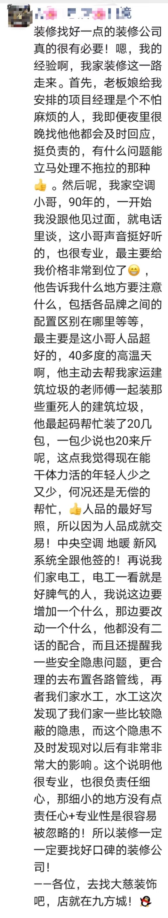 感谢业主对大慈认可与认真评价,我们将继续努力用心做好每一件事!也感谢我们每一位在一线工作的工艺人员