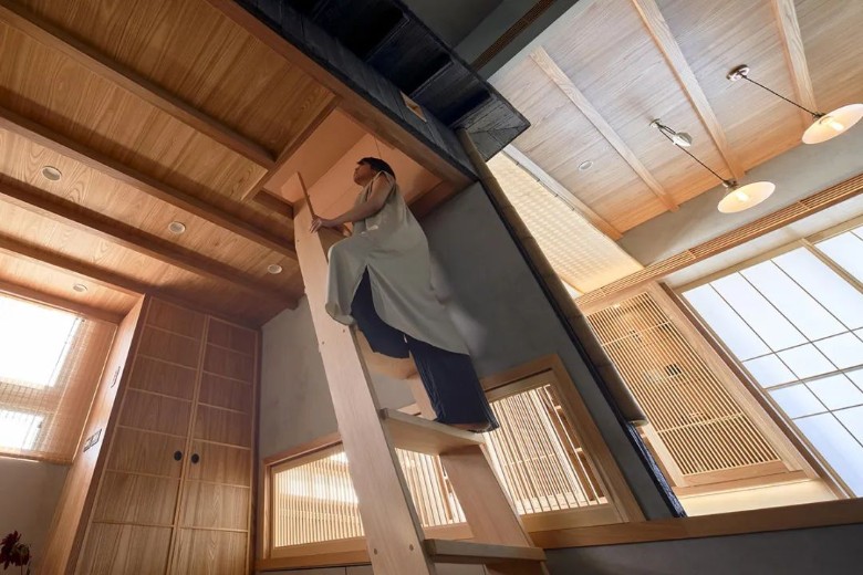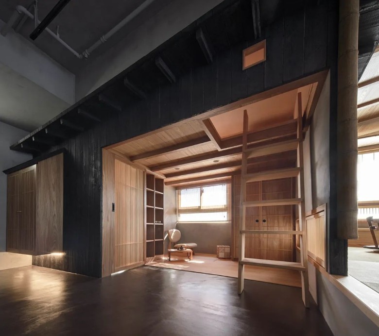 一并将厨房纳入落尘区内,由此架构出日式「土间」