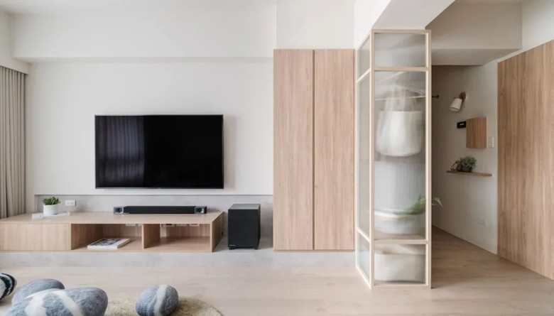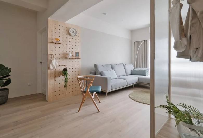 长出岁月痕迹,推门而入,即见浅木洞洞板与白