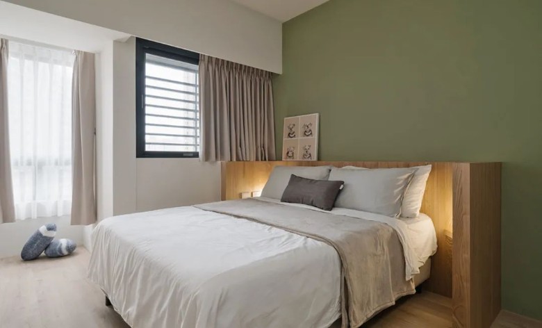 齐平左侧木质调墙面,于右侧转角处叙写空气感