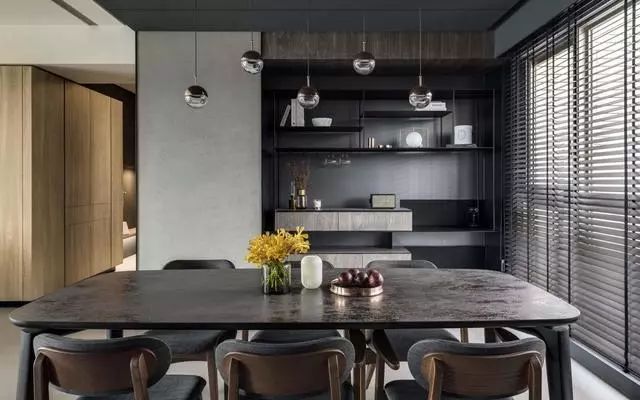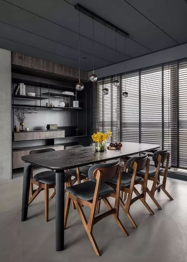 而餐厅旁的落地窗则采用百叶帘设计,让空间里的光线更好地完成过渡。