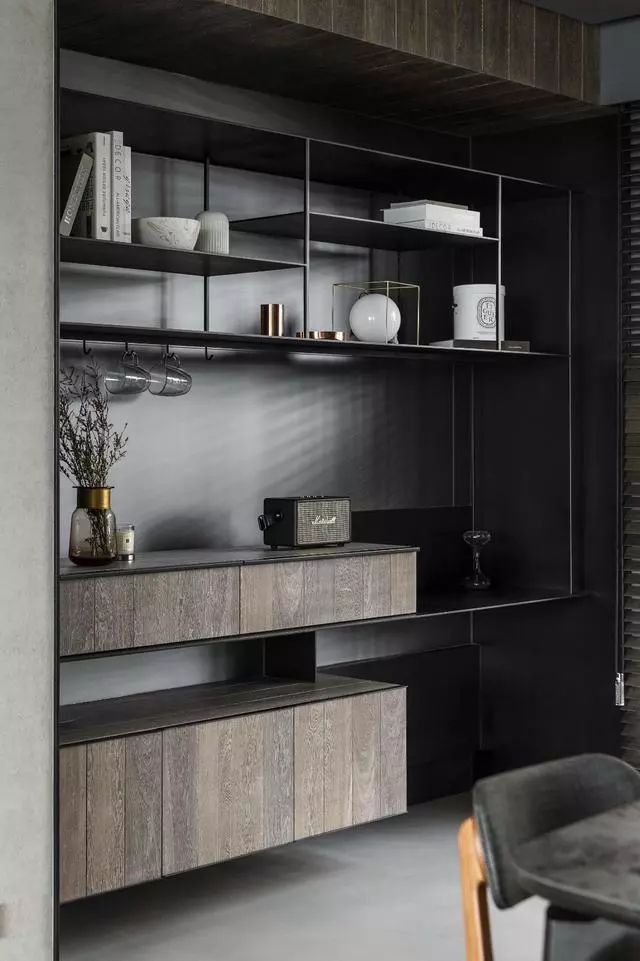 同样开放式的厨房在原本摆放冰箱的位置定制了一个大柜子,并将冰箱嵌入其中,让电器与柜体相结合,这是常规家具难以做到的一点。