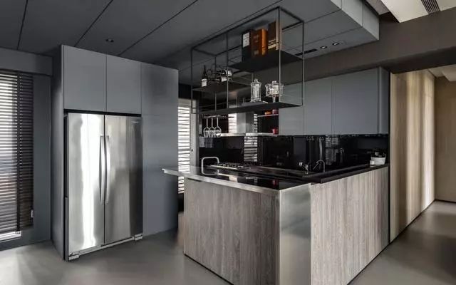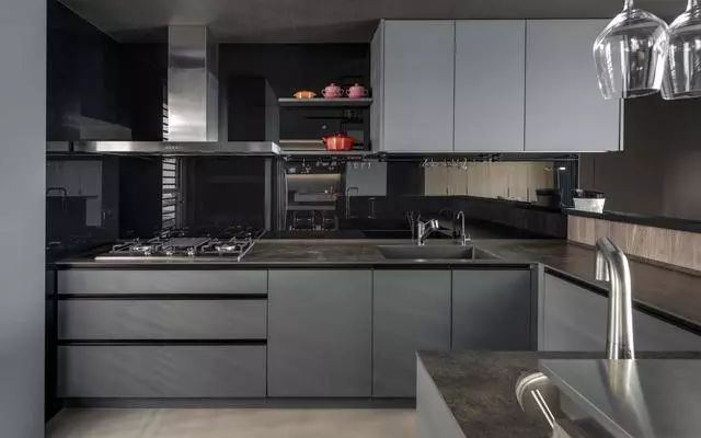 灰色的橱柜门板看起来美观大气,金属与石质纹理的组合让厨房操作台的视觉体验更加整齐利落。