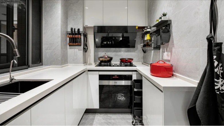 2、改变厨房的开门方向,增加了空间的光线和动线的连贯性;