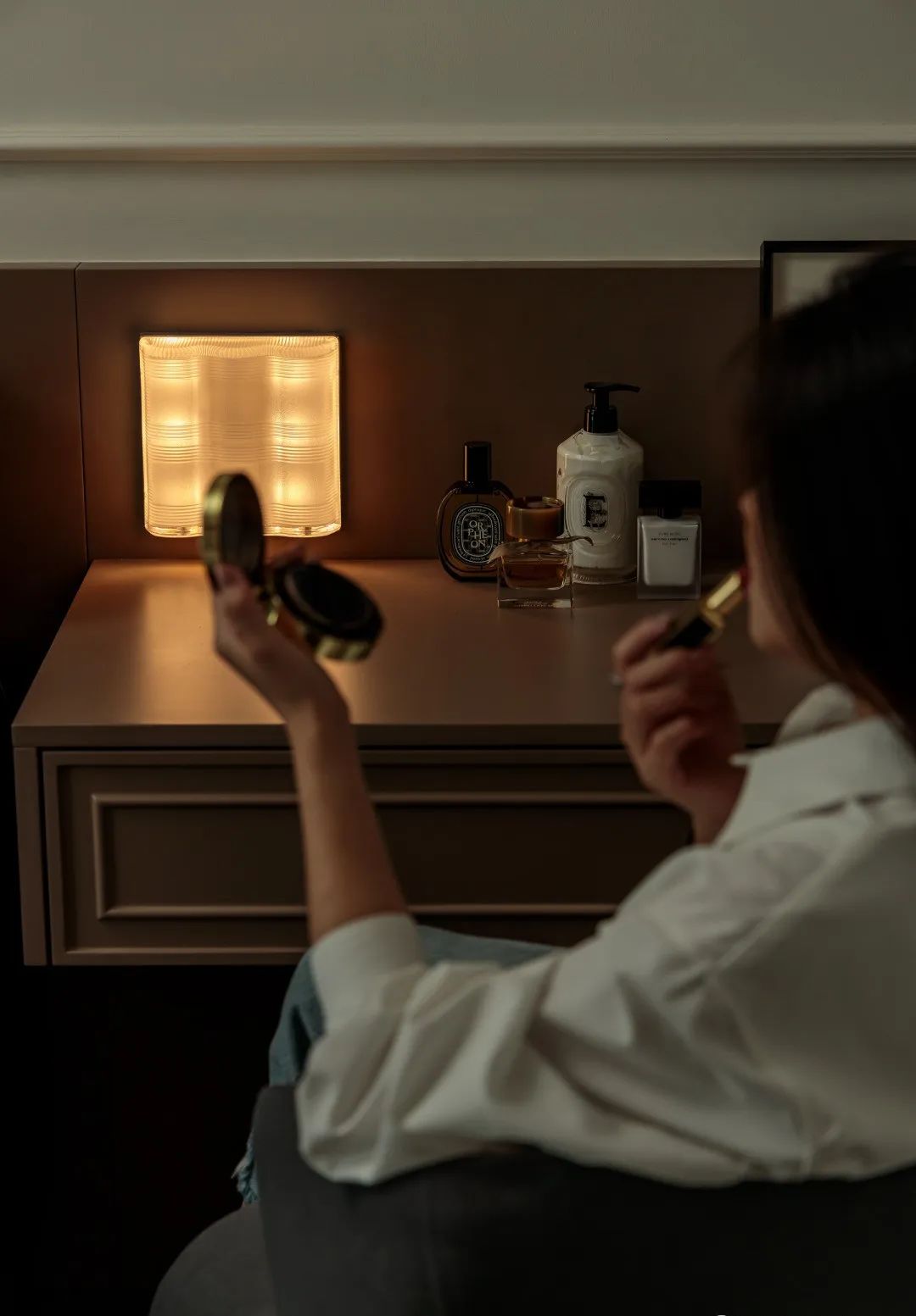 L型柜体满足收纳、梳妆台的多功需求,尺寸间,保持对生活的热情。鹿褐色与木质,勾勒出空间细腻柔和之美,将琐碎尽数化成内心自然流露的平静温柔。