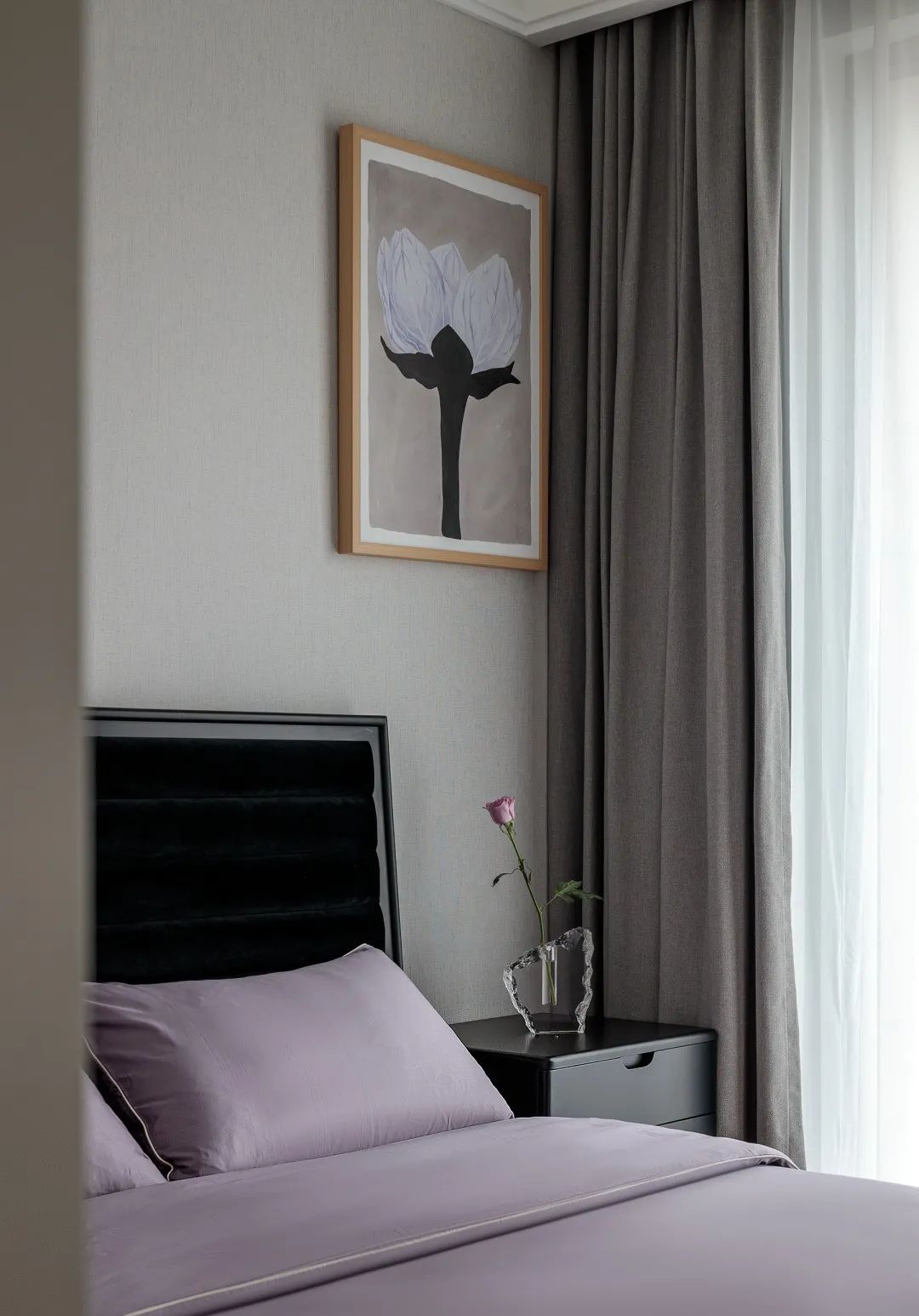次卧作为业主妈妈常住的居所,柔和安定的色彩时刻散发沉静内敛气息。