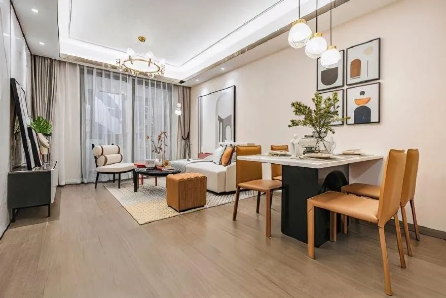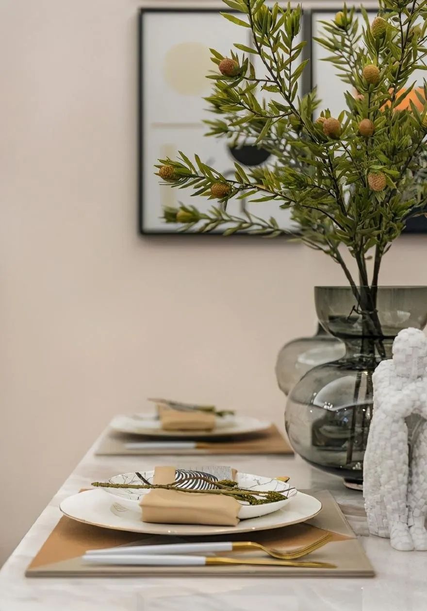 餐厅设计在客厅一侧,没有设计收纳柜,简约的设计让空间更宽敞些。