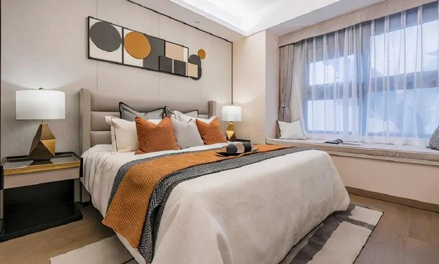 主卧空间还算可以,超大的飘窗,还设计了榻榻米,白色纱帘,很有感觉。