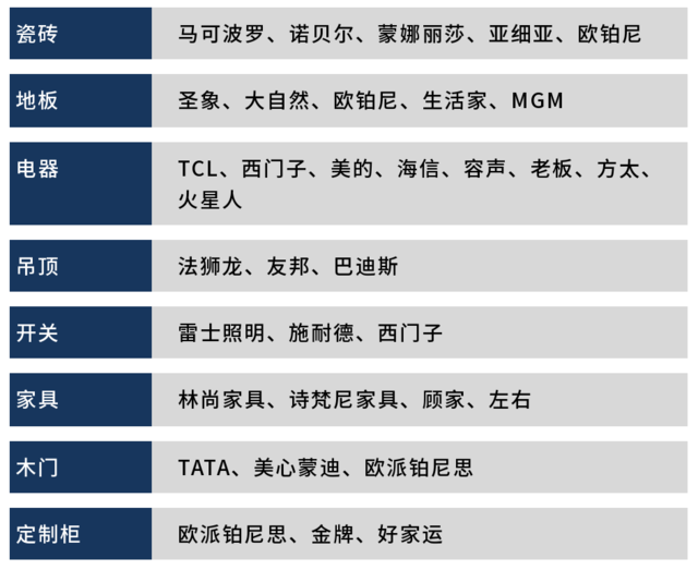 地砖升级马可波罗、诺贝尔;地板升级大自然、圣象;定制柜升级欧派铂尼思