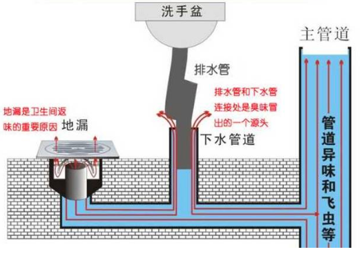 将普通的水管换成防臭管,管道内置防臭芯,避免臭味往上走;水管使用时间长了,难免老化、变形,要适当更换下水管。