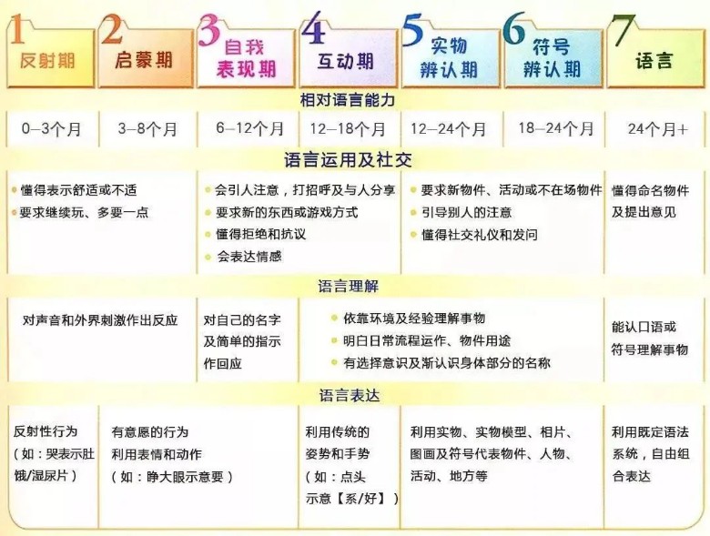 如果你的宝贝存在着沟通方面的困难,你需要从最开始的基础抓起,就像盖房子要先打好地基一样,但是每种能力都是需要发展的,只是不同阶段侧重点不一样。