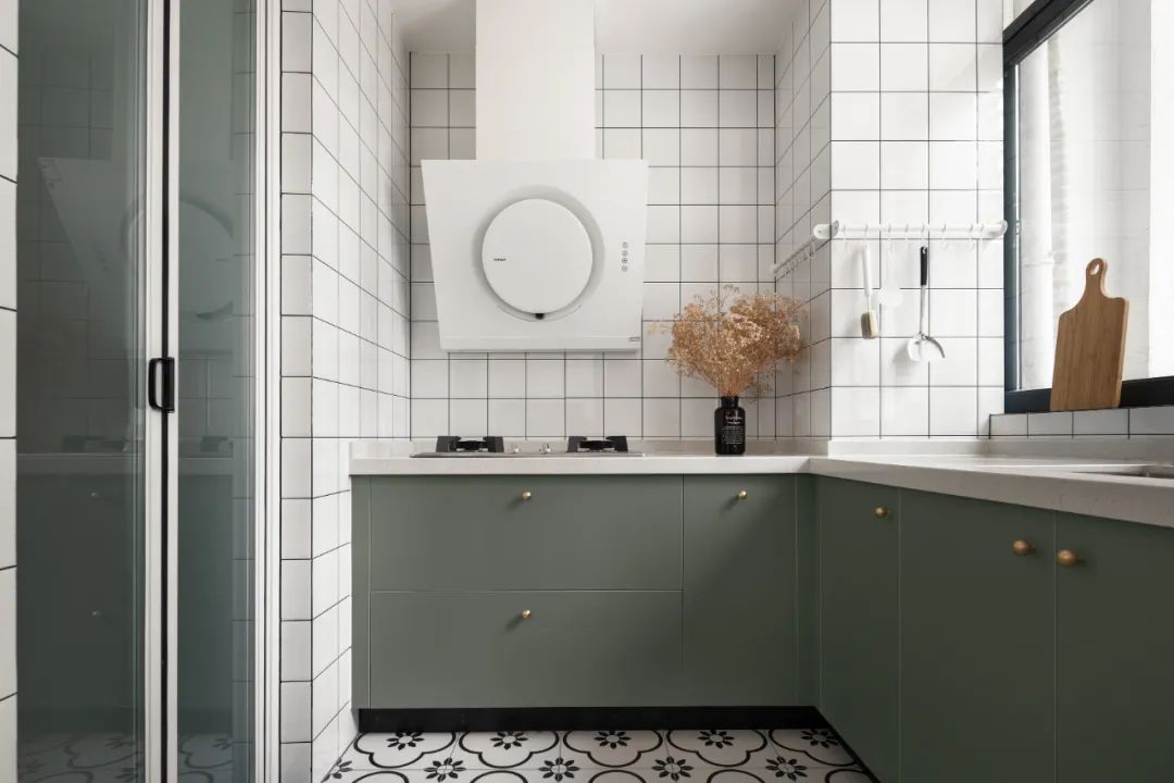 厨房特别用上了小两口喜欢的小白砖,整体呈现效果也很温馨干净。