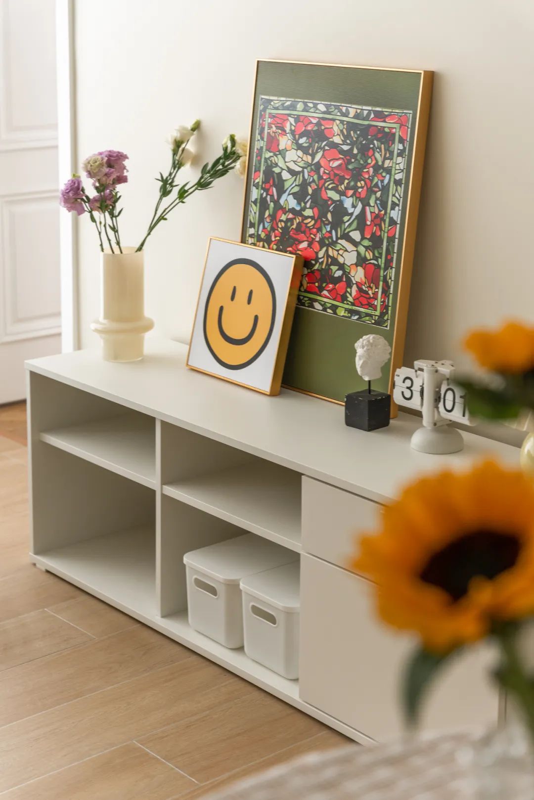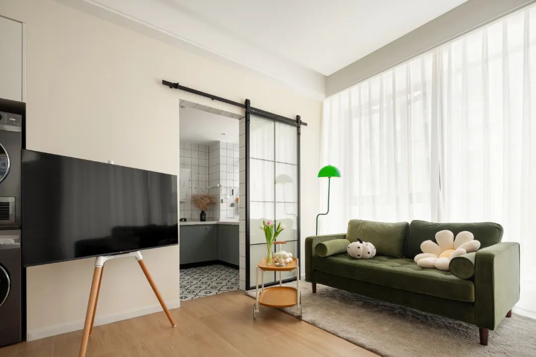 由于本身空间不大,所以由小推车代替了茶几的置物功能,灵动又可爱~