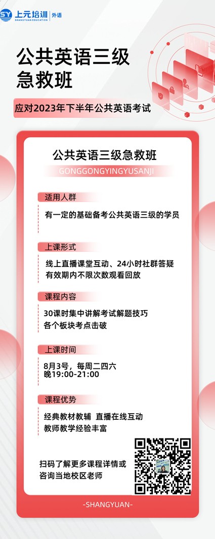 另有考前急救班来救场啦!公共英语三级急救班即将开课
