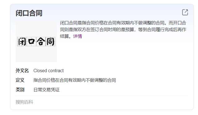 闭口合同,即为合同内容约定包含的施工项目无按实结算、无少算漏算项目,合同价即结算价,装修过程不主动增加费用,如后期因少算漏项导致的费用,全部由装修公司承担。