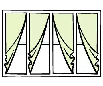 2、假如在炎热的夏日或寒风凌冽的冬季,每扇窗都装上一副窗帘可以更好的遮挡与隔绝室外的气候,这种窗帘造型简洁流畅,可以根据需要拉开或拉上某一个窗的窗帘,同时也提供了很好的私密性。