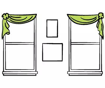 6、对于两扇对称的但又不相连的窗来说,这种窗帘的做法非常适合。假如需要增加些私密性也可以再加装一套薄纱。