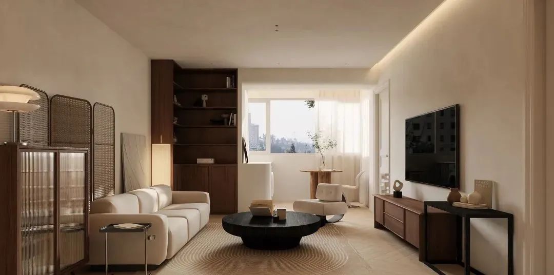 相比皮质、丝绒,棉麻、羊羔毛的沙发入眼会更柔软,餐桌、餐椅尽量选择原木的款式,更能与空间气质相符。