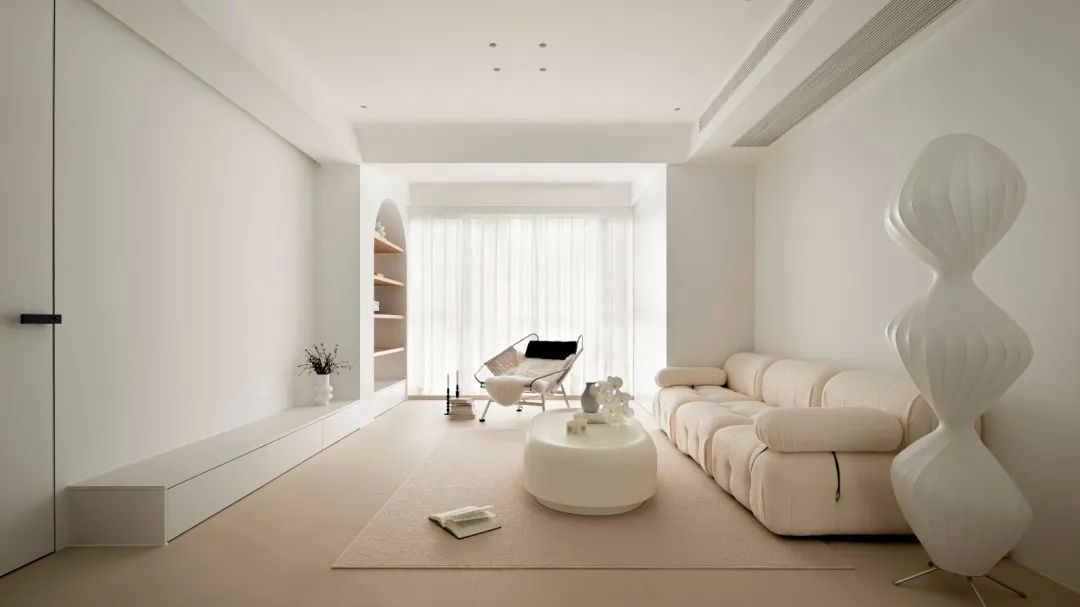 看过奶油风的小伙伴就会发现,有几种元素会在这种风格里反复出现,比如说圆弧线条,比如长虹玻璃,还有就是造型圆润的家具。这些其实都是奶油风的加分项。
