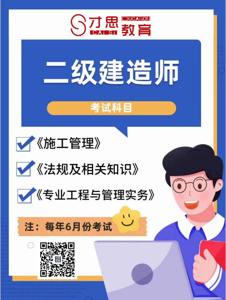 昆山的二建报名条件 昆山二建的报名时间 二级建造师的就业方向有哪些:1.建筑工程、机电工程、市政公用工程、水利水电工程、公路工程、矿业工程。 专业的就业方向:建筑施工企业技术部门工程管理人员、监理公司监理员、招投标公司的技术人员、建设单位的管理人员。 以及房地产开发公司、工程技术公司的施工管理岗位、工程咨询与评估机构的造价咨询和项目评估岗位,星级酒店的工程管理岗位、建设施工单位的技术岗位、政府建设主管部门的工程管理岗位、高档物业的工程管理岗位、国内大中型企业的基建岗位等。 专业就业方向:适宜到到市政公用工程企事业单位从事施工技术与管理、质量管理、施工监理、安全管理、工程造价、合同信息管理等方面工作。 二建的考试条件:1. 具备工程和工程经济类中专及以上学历并从事建设工程项目施工管理满2年。 2.具备其他专业中专及以上学历并从事建设工程项目施工管理工作满5年。3.没有任何学历的并从事建设项目施工管理工作满15年。 2023年上半年[url][urlend4] :二级建造师报名时间2023年安排在2-3月份进行,部分地区持续到4月份进行。[url][urlend4] 安排在5月底6月初进行。 二级建造师的证书是在省人力资源部门和省住房建设厅共同发放. 二建的考试科目:1. 建设工程施工管理。(单选题70题1分一题,多选25题2分一题。合计120分,72分及格。)2. 建设工程法规及相关知识。(单选题60题1分一题,多选20题2分一题。合计100分,60分及格。)3. 建设工程管理及实务。(单选题20题1分一题,多选10题2分一题,案列题型4题20分一题。总分120分,72分及格。) 法规相关的=知识8大章:1. 基本法律知识。2. 施工许可法律制度。3. 发承包法律制度。4. 合同和劳动合同法律知识。5. 环境、能源和文物等法律制度。6. 安全生产法律制度。7. 质量法律制度。8. 解决纠纷法律制度。 建造师是由人力资源部门和省住房建设共同发放。 才思教育集团培训课程:1、学历:自考,成考,远程,大专本科,专本套读,研究生考前辅导班2、会计类:初级/中级职称,税务师,CPA,会计做账培训、出纳做账培训3、建筑类:二建/一建,消防工程师,消防员,安全工程师,造价预算,八大员等4、职业技能:教师证,经济师,心理咨询师,语言类,人力资源管理师5、育婴师、月嫂、健康营养、产康儿推6、计算机:cad/sw/ug机械模具设计,ps/ai/平面设计,室内设计,商务办公,影视后期7、政府补贴:育婴,咖啡,花艺,茶艺,西式面点,整理收纳,化妆,物业管理员,人力资源管理师等(免费)详情私聊多人团报优惠,转介绍有红包学校网址:http://[url][urlend6]/咨询老师:江老师咨询电话:19941905958<同微信>咨询地址:昆山玉山镇九方城市花园9栋3楼——才思教育