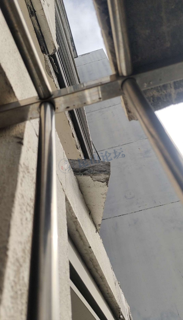 今天晒衣服,突然看到窗户上面有一块大砖,再往上一看,应该是5号楼一单元703室掉的,他们外面还有一块要掉的砖。