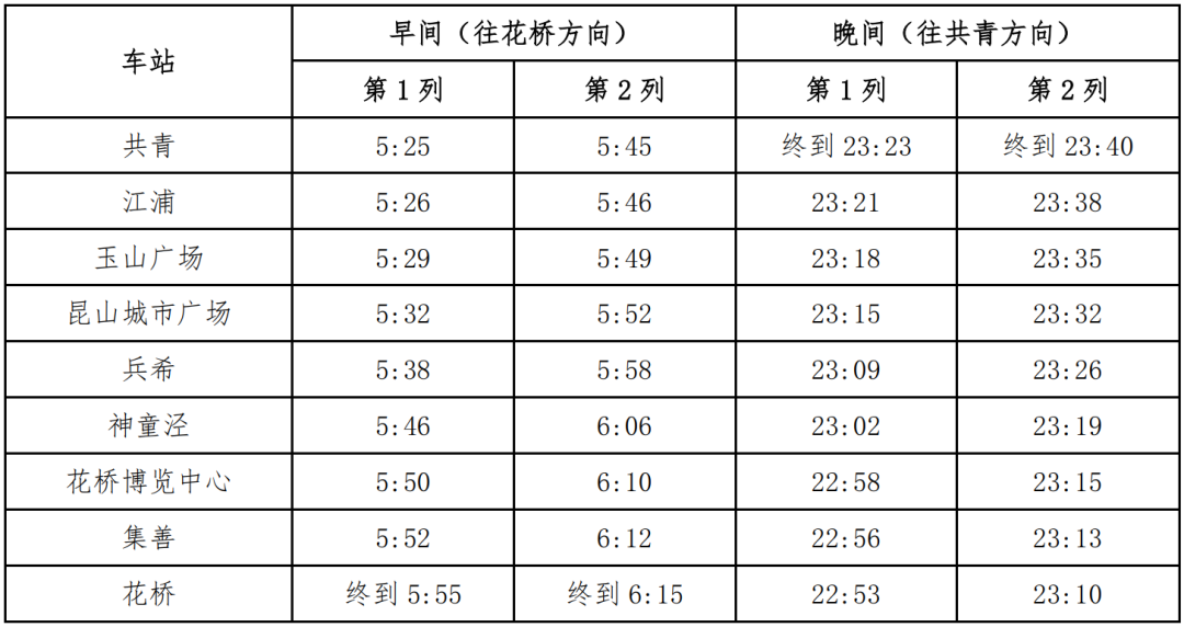 自1月5日起,苏州轨道交通11号线早间开行2列共青站至花桥站大站快车,晚间开行2列花桥站至共青站大站快车。