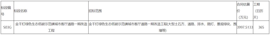 招标范围:金千灯绿色生态低碳示范镇城市客厅道路一期改造工程(大型土石方、道路、排水、路灯、景观绿化、围墙等)