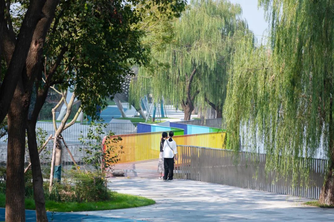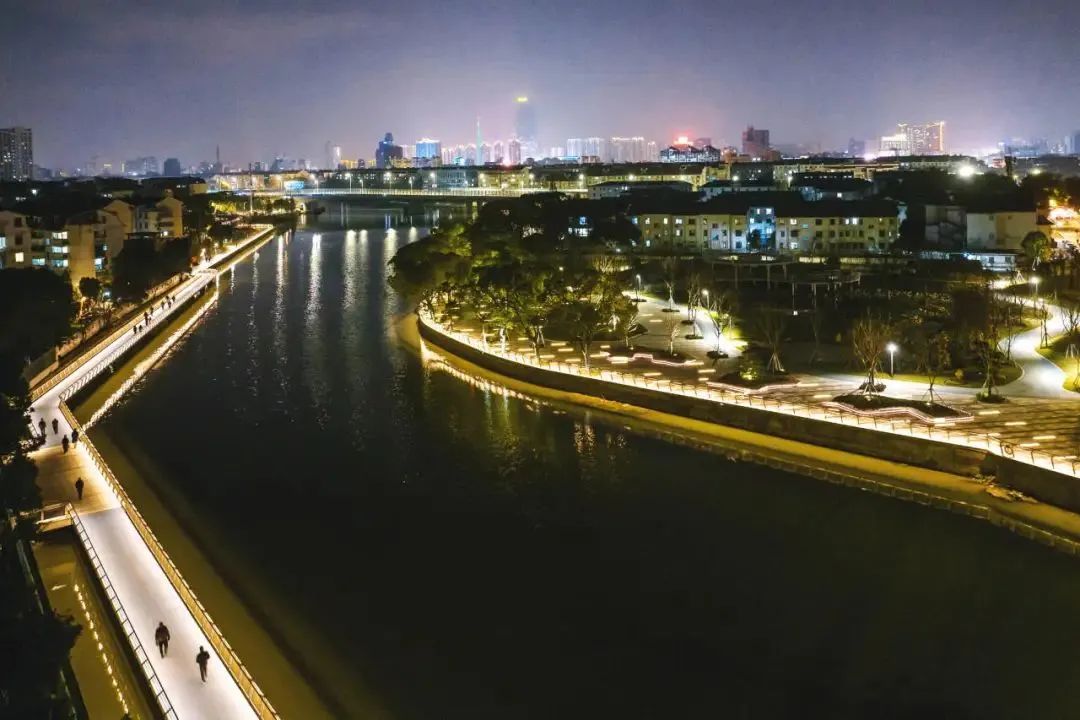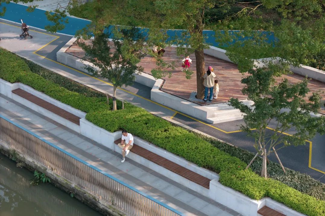 一期项目的完工,打通了北环城河畔的慢行断点,基本连通了傀儡湖--庙泾河--张家港河--北环城河--青阳港十公里的滨水活力慢行网络,通过连接森林公园、亭林园等大型公园,与多处新增“小薇”绿地空间,构建了点线融合、便捷通达的滨水公共休闲网络,用一条道串起了一片绿,为市民们提供了亲水平台和休闲运动好去处,也“串”起了绿色生活。