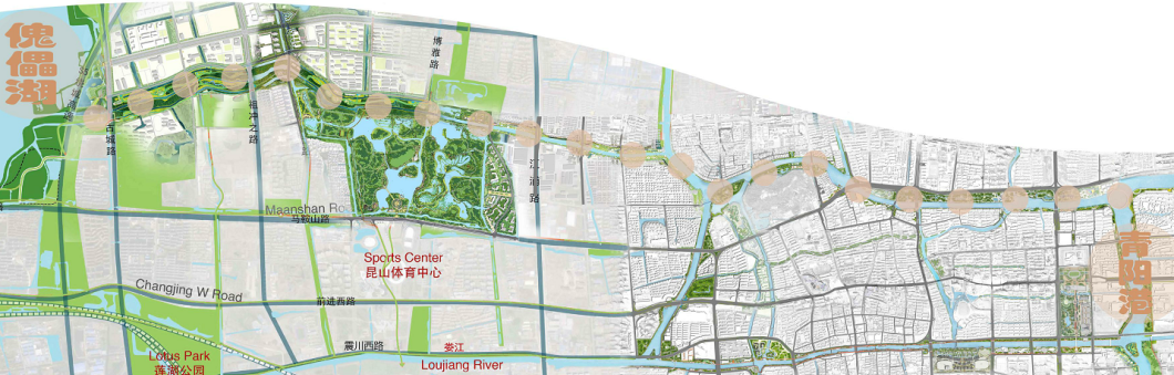 环城滨江绿道以中心城区北环城河、叶荷河、娄江、青阳港等水系为骨架,重点围绕39公里滨河沿线绿地实施绿道贯通、节点提升,打造内外连通、功能延伸、资源开放的共享活力环。