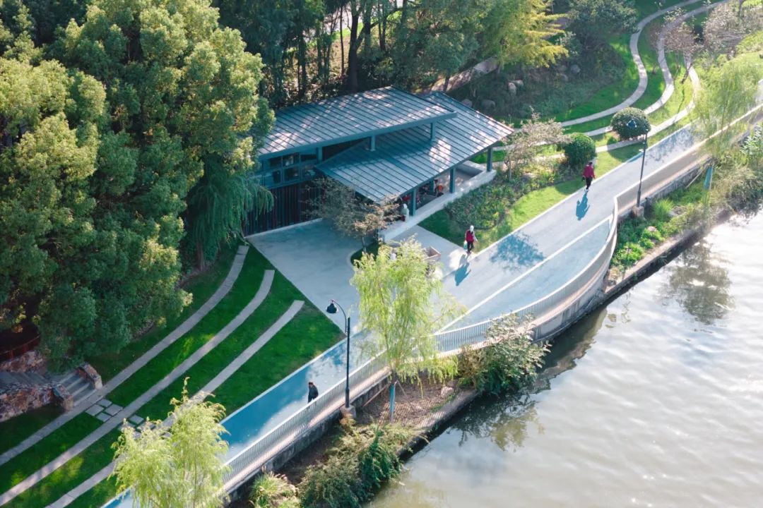 环城滨江绿道(一期)工程位于北环城河沿岸,北侧为玉城新城至皇仓泾河,南侧为亭林园至青阳港,总长约3.8公里,自西向东串联我市老城区亭林园、滨江公园、青阳港生态廊道等多处门户节点,打通被封闭和阻隔的滨水岸线,沟通了11个社区,串联了15个景观节点、更新了5处桥下空间,重塑沿岸景观节点与活力空间,就像是镶嵌在城区的一条“翡翠项链”。