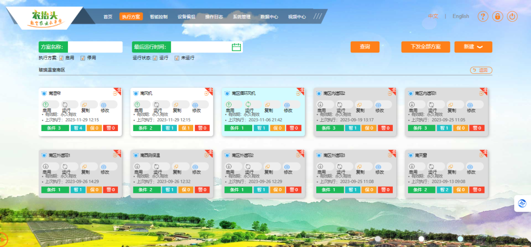 根据智慧生产管理平台实时采集的温度、湿度、pH、EC等土壤墒情,棚内CO2、光照度及风速、风向和降水量等小环境气候情况,结合蔬菜品种生长模型,实现对水肥一体化精准灌溉、温湿度及光照等内容的“一图”展示、分析决策及远程调控,推动精准农耕、可视化农事管理、智能决策等。