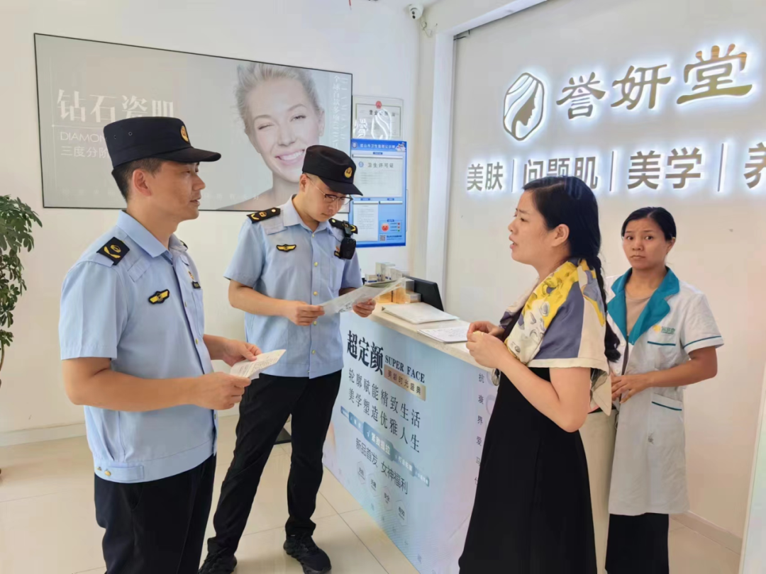 截至目前,累计开展普法宣传122家次、发放宣传册247份、指导58家美容机构办理卫生许可证、督促91家美容机构完成工作人员健康证办理。