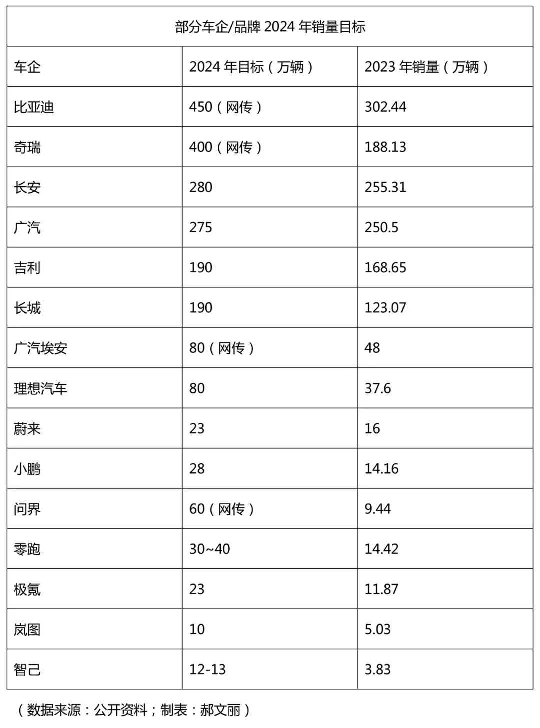 有的车企理性十足,将2024年目标定在比2023年销量略高;有的车企则相当狂热,目标翻倍甚至翻几倍!车企们2024年的目标能实现吗?超高目标的车企哪来的自信?我们从中挑选了部分车企,对其公布的销量目标进行盘点及分析,一探究竟。