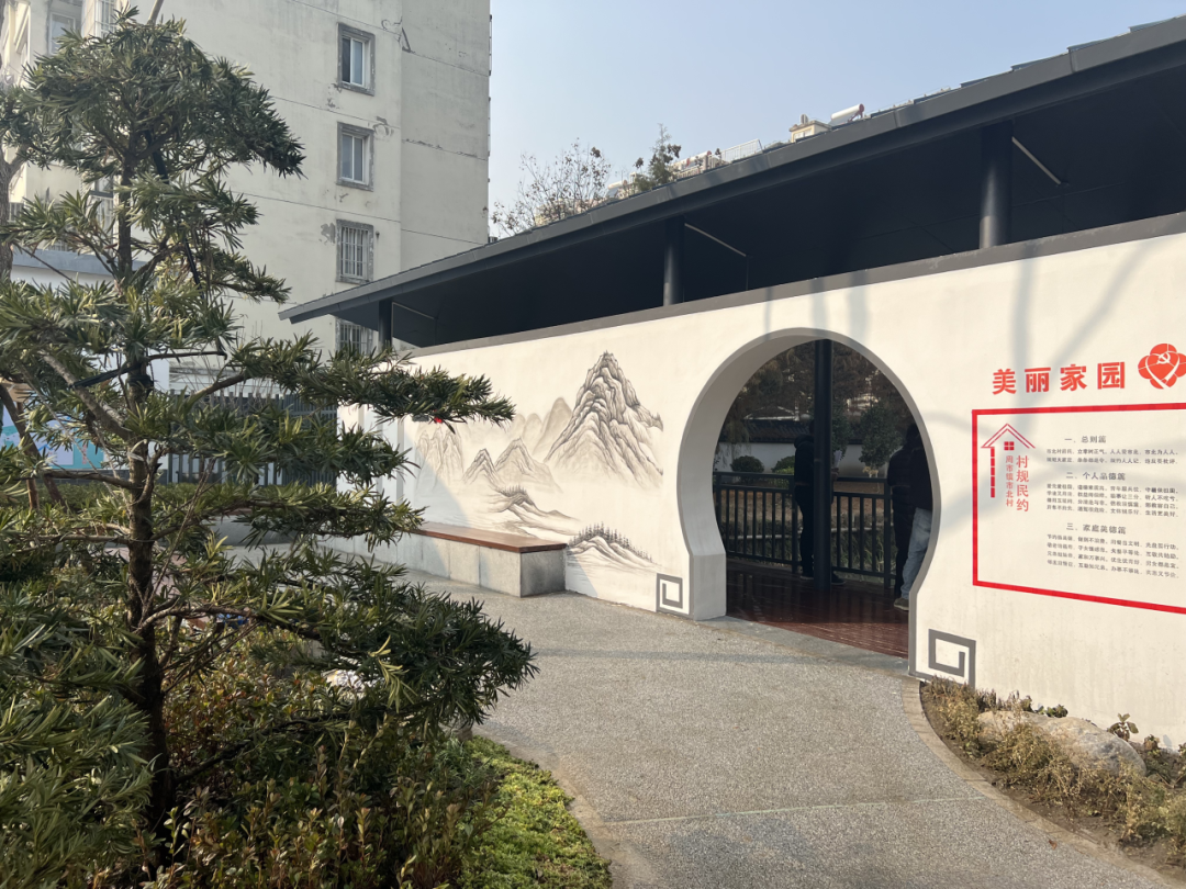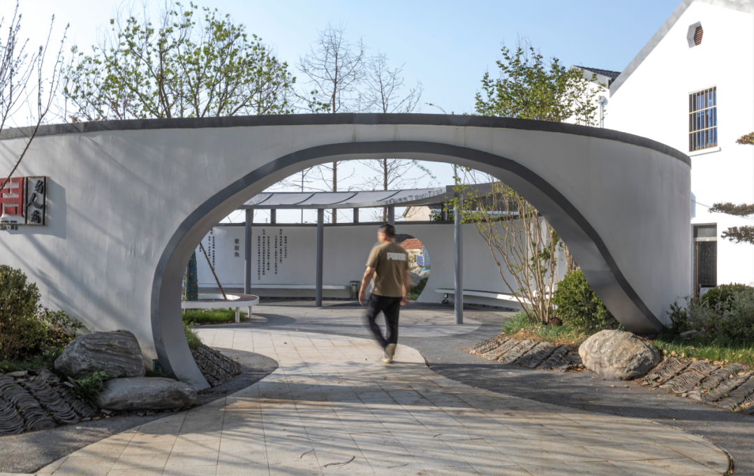 对茂源路北侧的零星地块进行改造,结合周市本土文化,采用新中式墙景、廊架等元素,充分展现老镇传统文化。