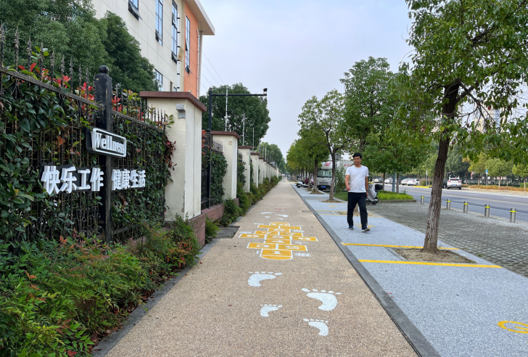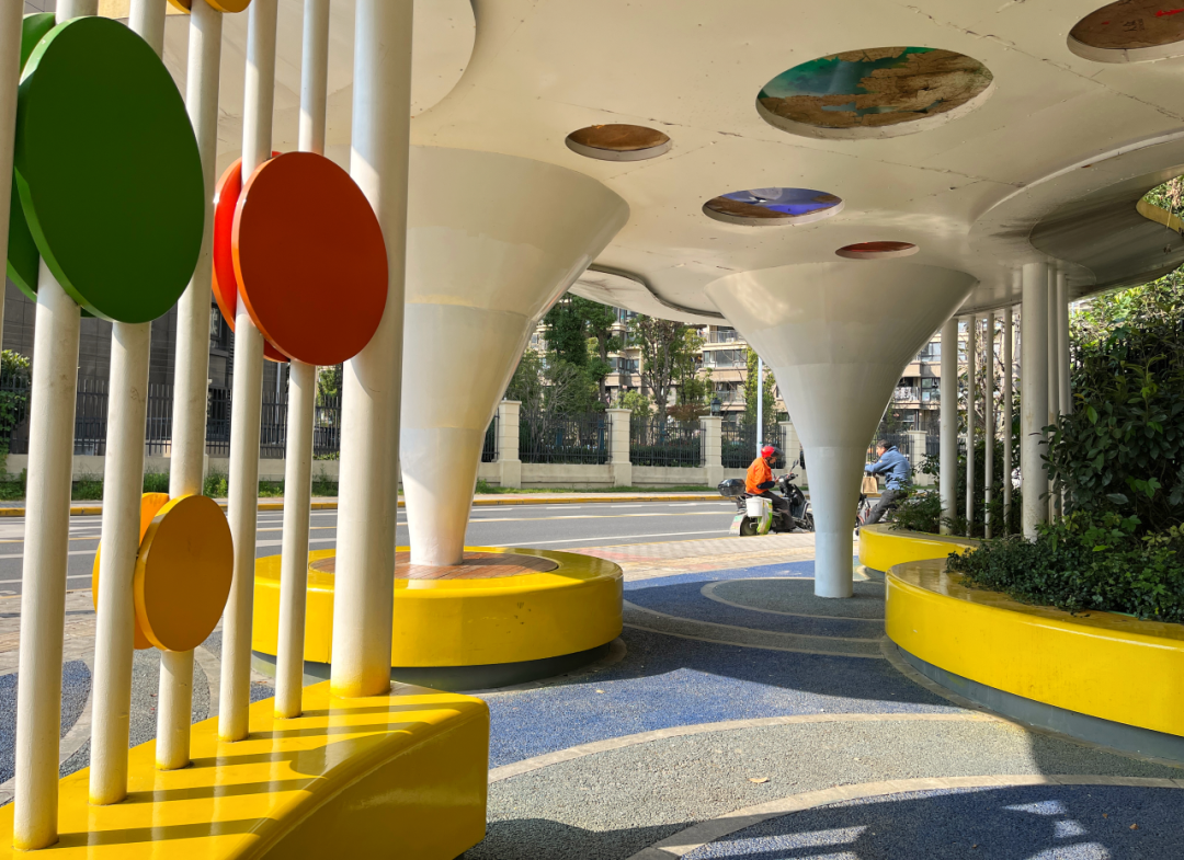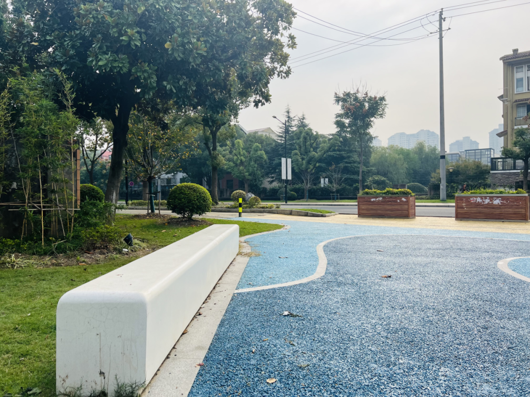 为改善民生需求,在优比路南侧进行绿化景观提升改造,建设以健康活力为主题的小游园,激活邻里社交,满足居民交流运动需求,提高城市空间资源利用率。